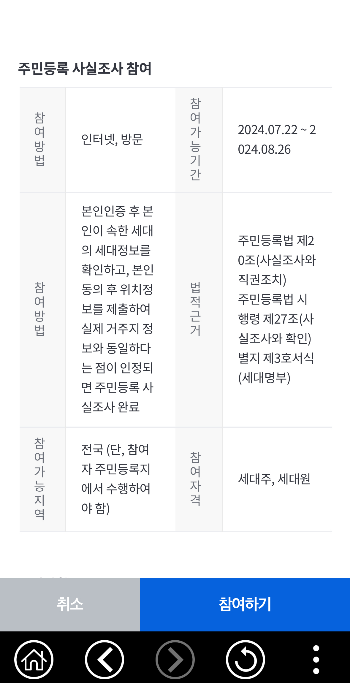 ■ 참여 방법: '정부24' 애플리케이션 (비대면 사실조사), 방문 조사